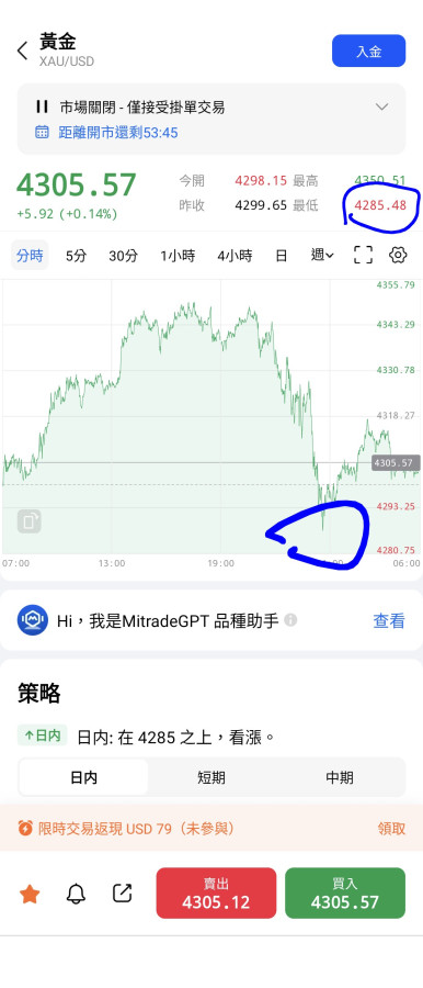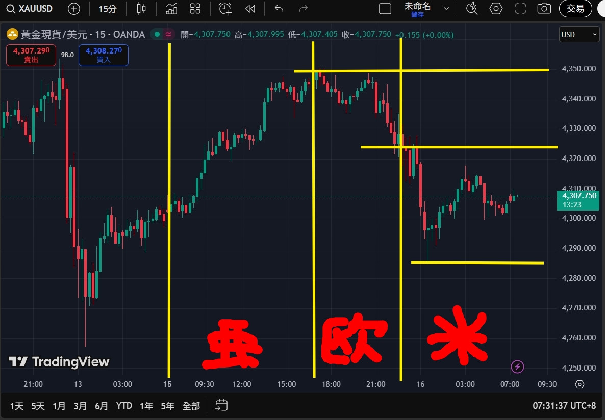 Y大老江湖, 會參考各國匯率, 利率走勢輔助判斷, 我就傻傻追逐大盤, 禮拜五美盤第一波砸盤攻勢又急又猛, 半小時內殺了50刀, 後面兩波直接把當日的金價再打回昨日