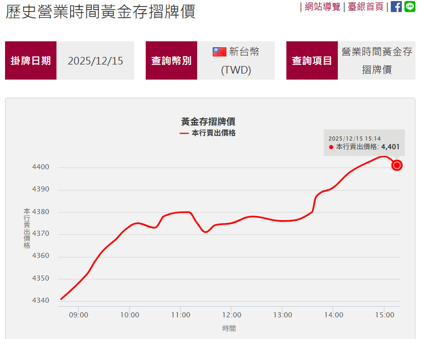 雖然美元報價尚未站上4400,但是台幣黃金存摺已經先站上了。