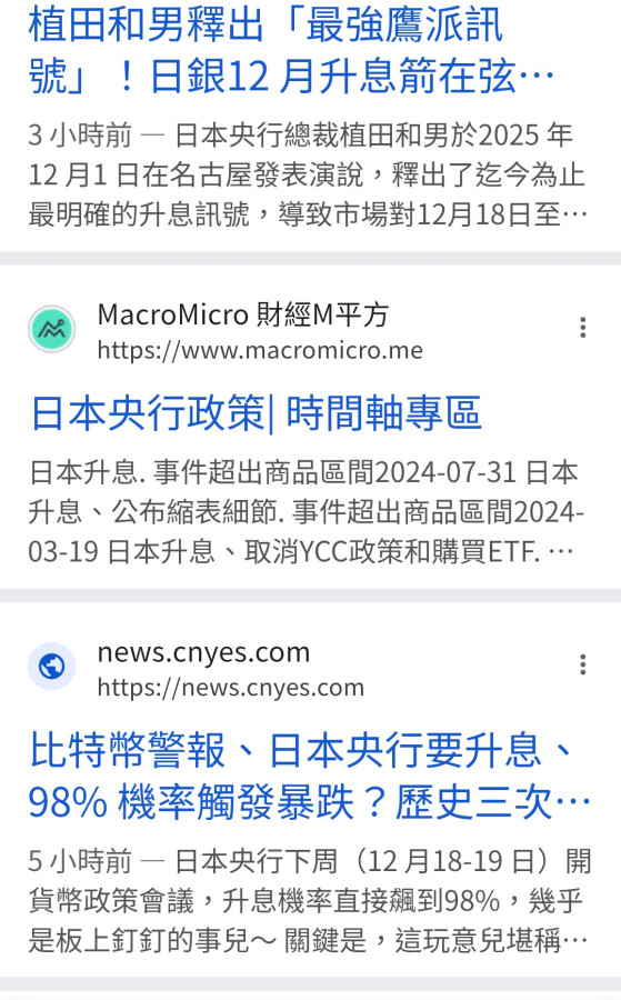 目前股市比特幣跌深反彈一些,還是要小心周四日幣大升息,日幣是美元指數參考的五種貨幣之一,日幣升值美元指數跌,對金價反而有利,日本人超愛買黃金,日幣升值買黃金會變便宜,明後天還有隱藏的美國政府關門數據公布,大概對黃金也有利,會殺一般都是歐洲盤下午三四點就殺,還有快到七點殺,如果七點沒殺,我是期待美國盤拉上去