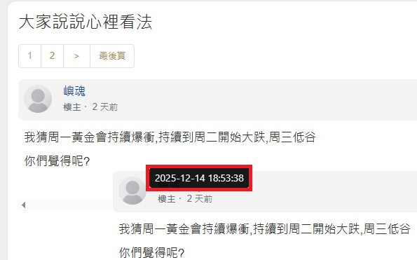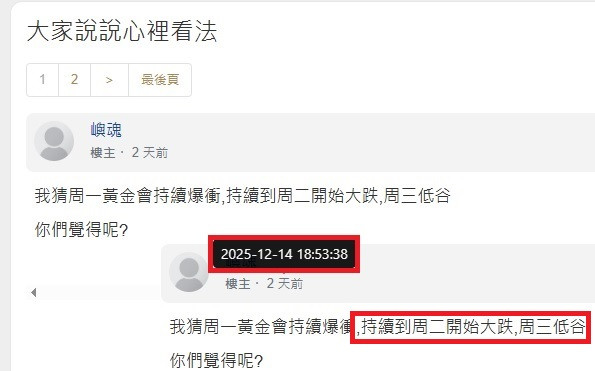 我發了一篇文章,想邀請大家參與預測黃金走向