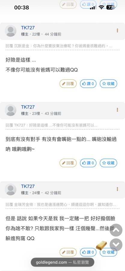回覆 金瑞芳金條:別跟他認真,搞不好只是國中生,網路打字嘴...