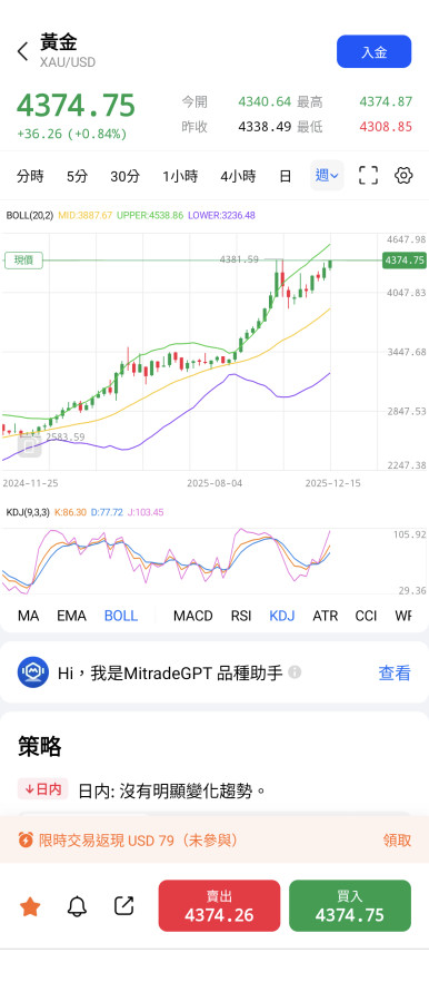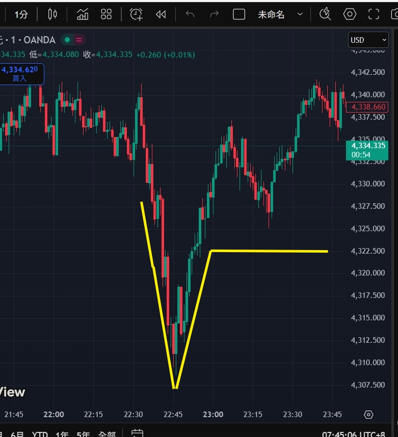 這兩天主要關卡是4350,越過就輕鬆多了,利多急殺,原來是嚇心不穩的散戶,洗一些散戶出去,瞬間殺30美元,真恐怖,既然衝上去,就原諒你了!川普九點說明年會大降息,晚上數據可能不好,美股也衝太快,台股盤後也大漲300多點,注意明天日幣升息,金價期貨也上4400,繼續加油