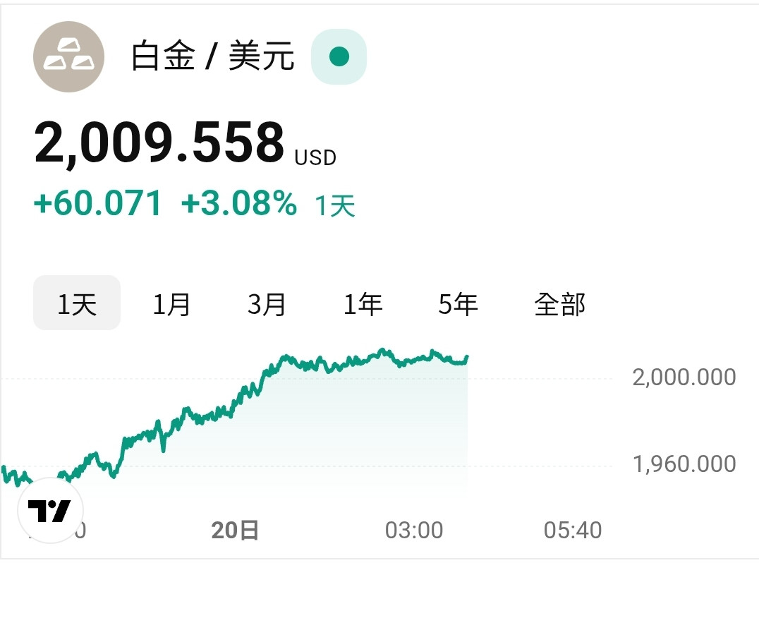 鉑金真的漲翻了,雖說我只有幾百克,已翻倍賺了😁