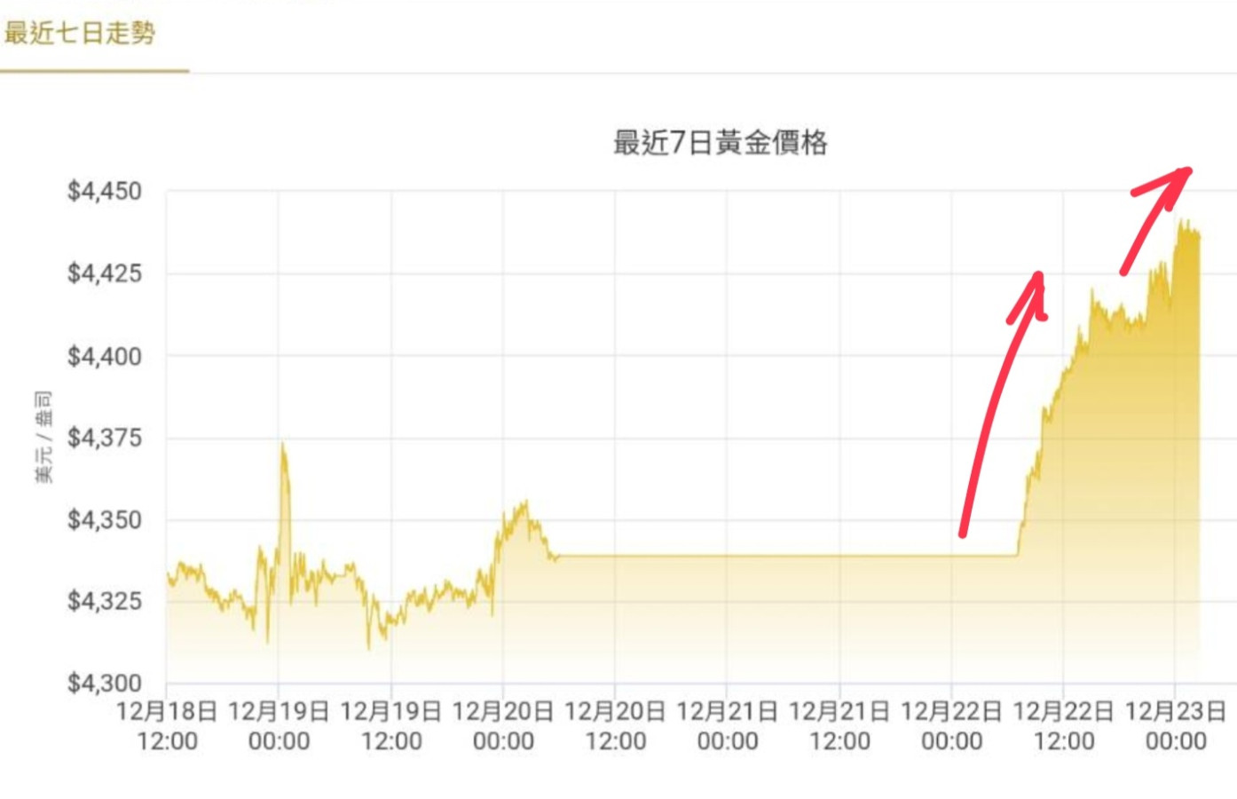 我認為黃金漲勢如果能一次過4400,才是開始往上噴發的時候,現在黃金的價格持穩,也有利於後續機構與各國中央的買入,可是最近他們似乎把其他貴金屬也看的很重要,所以才會全部都上揚