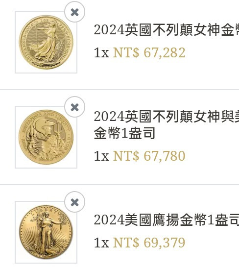 12/4在Truney下訂這片不列顛女神+自由女神1盎司金條