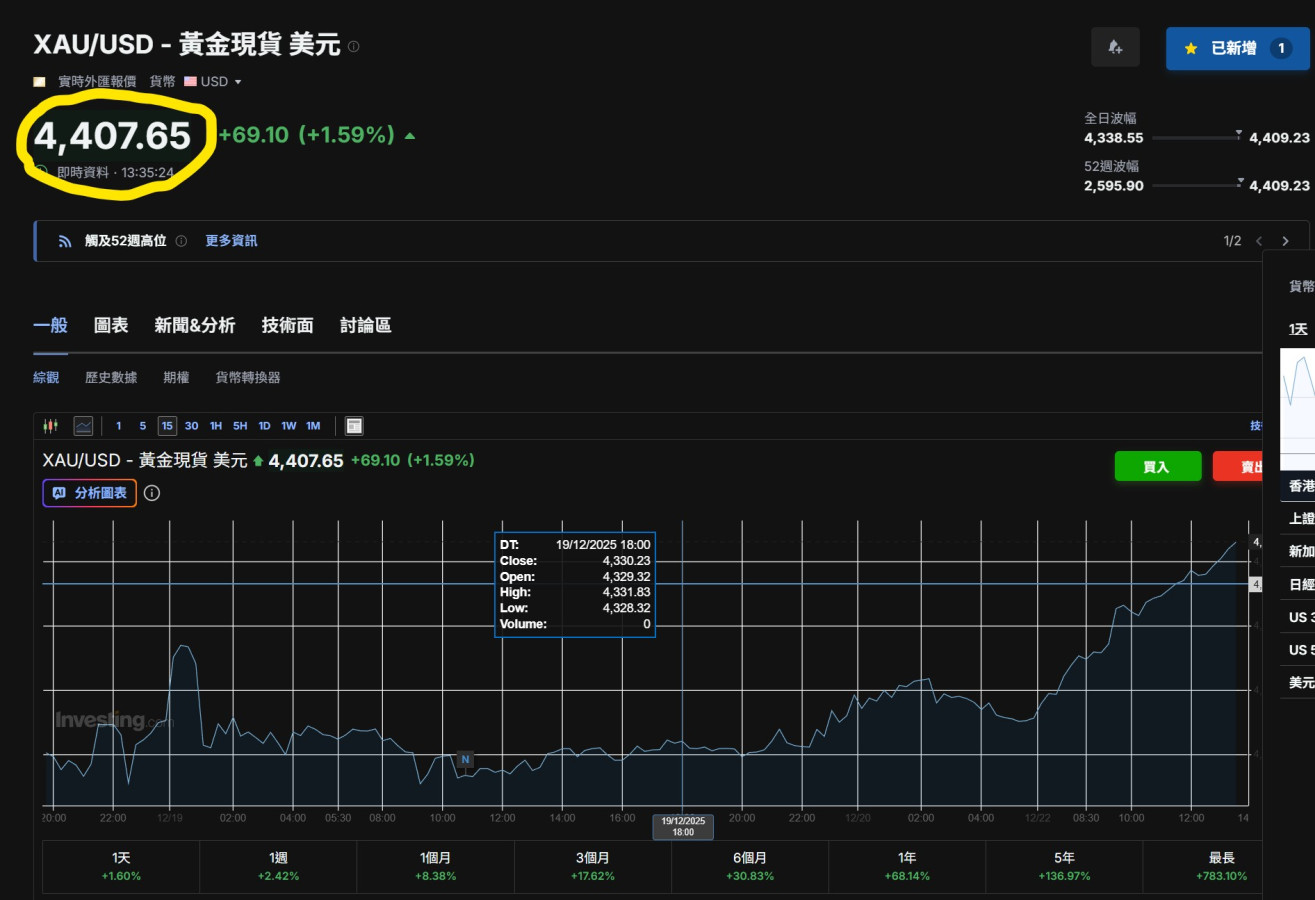金金經過一段時間的盤整,終於是突破4400了,感動捏!