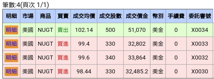 我的複委託手續費過兩天才會出帳,還大家誤以為有這麼好糠的事。發大操作功力了得喔!不過我沒有一次出完,留一半看看。下週應可以再看到新高點,但一樣見高就跑。