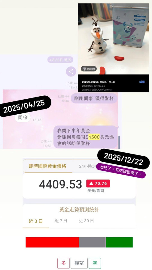 結果一語成讖了 😂 (其實台幣計價的黃金上上週就破4500,現在是美元計價的也破了)