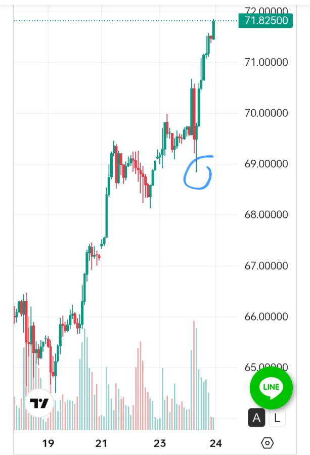 回覆 A06868:晚上開始暴衝,大家發財囉😁😍70.63▲...