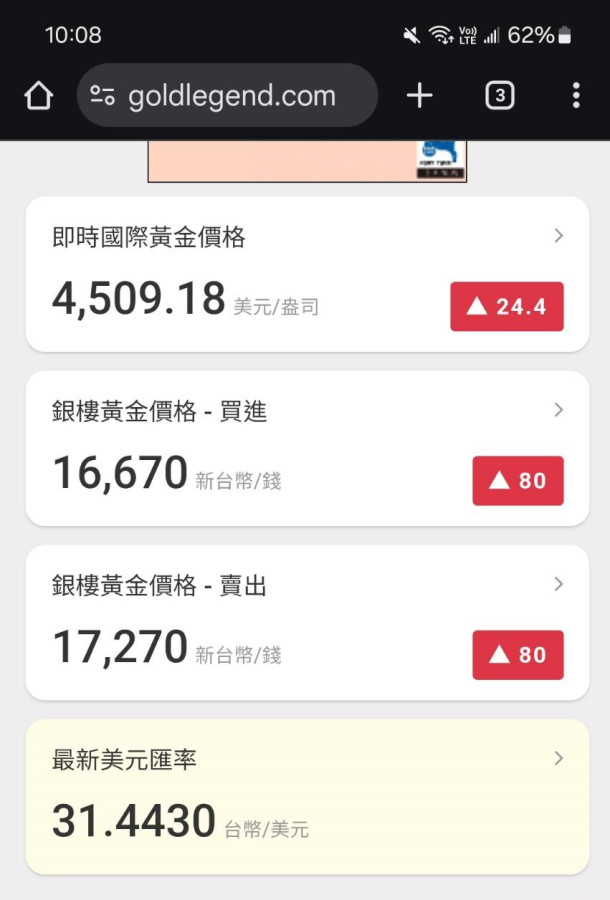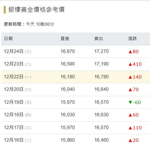 黃金連漲4天 黃金天天創下最高紀錄