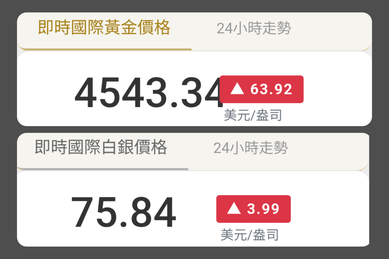 金銀價格突然積極了起來,可能休假中的貴金屬交易員都被召回公司,緊急拉升價格,不然實體金條銀條就要不斷的被搬往東方大國了!