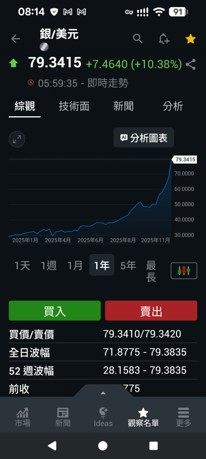 白銀的價格瘋了, 一天內可以打卡這麼多次,睏霸數錢就是這種感覺吧?