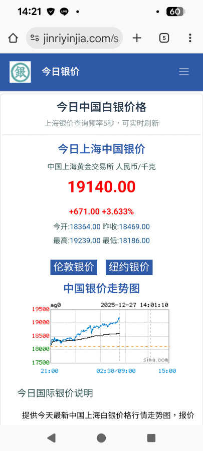 12.27 上海銀報價 19140,折合 84.7 美元/盎司,看來上海是沒打算給倫敦好日子過啊.. 😁