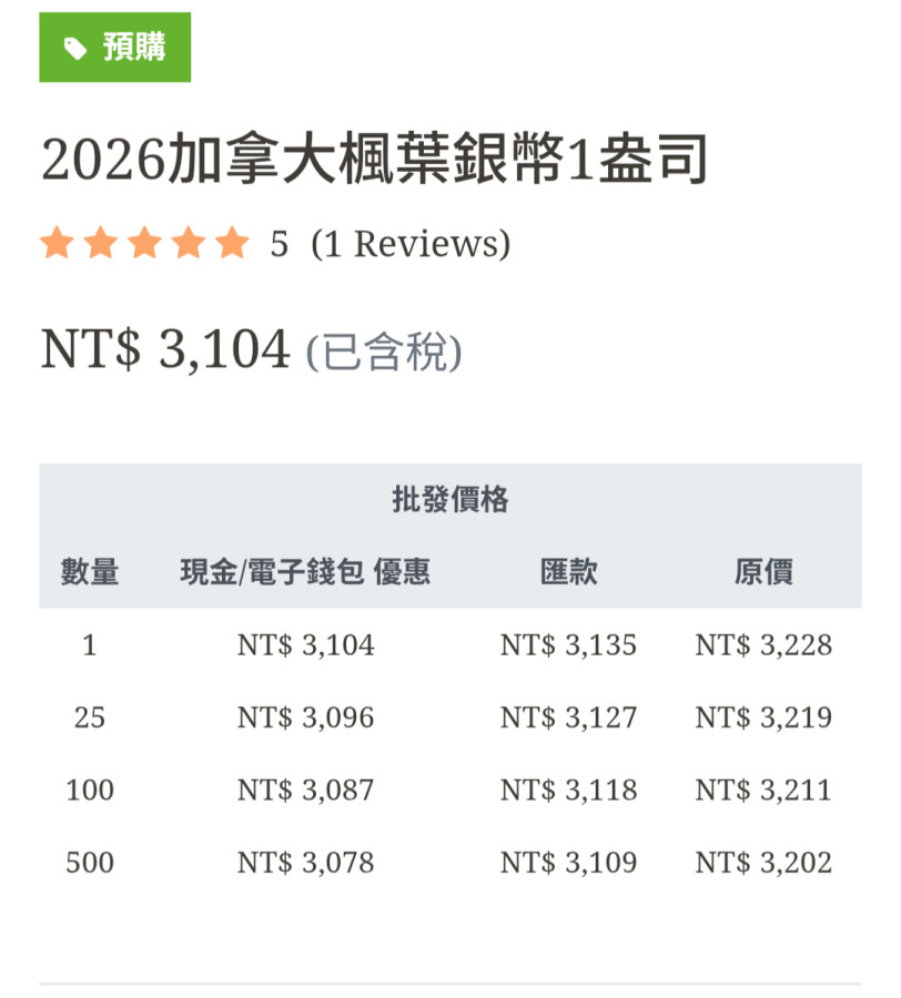 這裡還有貨。https://www.apmex.com/product/320830/2026-canada-500-coin-silver-maple-leaf-monster-box-sealed