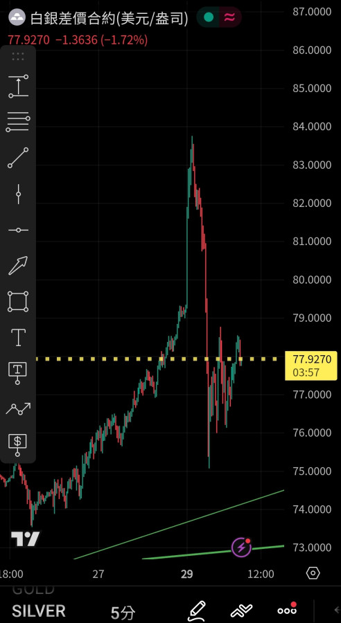 最近的銀如果有上槓桿會相當嗨, 我還沒跨足到這個賽道, 光用模擬玩銀, 我就有點扛不住, 點差大, 漲幅劇烈, 我先顧好黃金吧, 好好做一樣可以不耽誤出金!