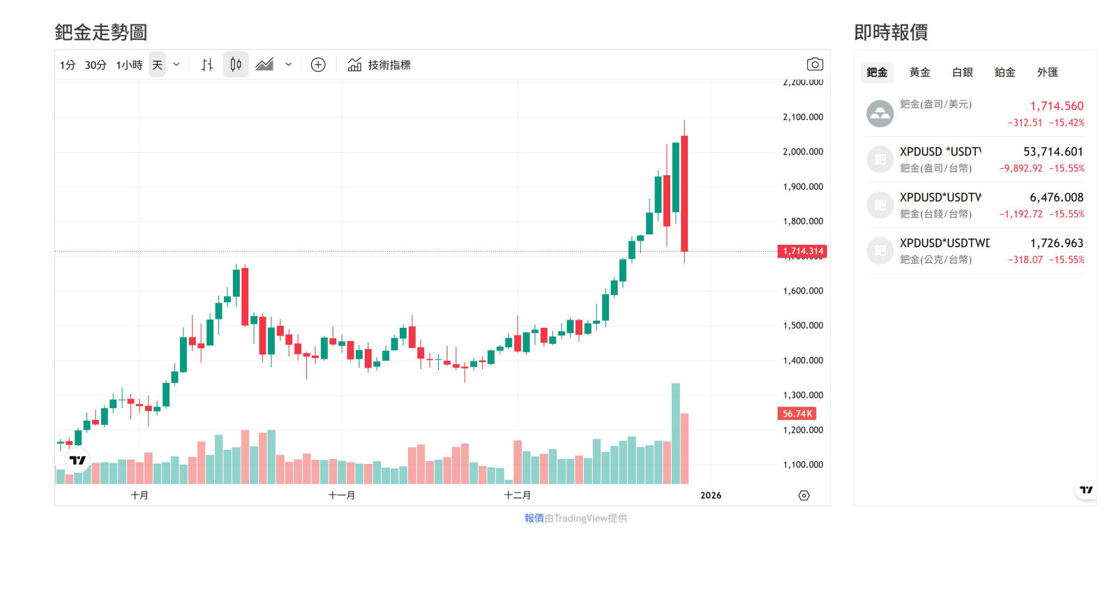 這也是第一次看到貴金屬的這種誇張跌幅...