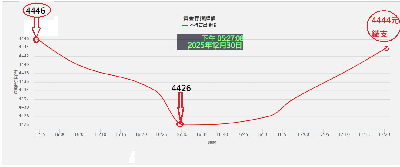 回覆 金贊:台銀下午盤賣出價格已更新至4456元/克...