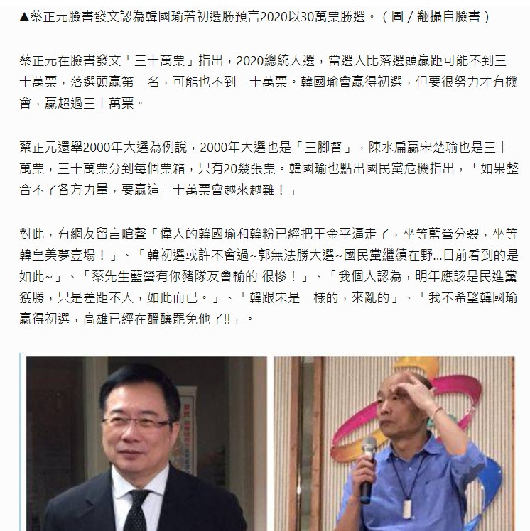 回覆 暗影:我沒點進去看影片,不過就我常看到蔡正元的...