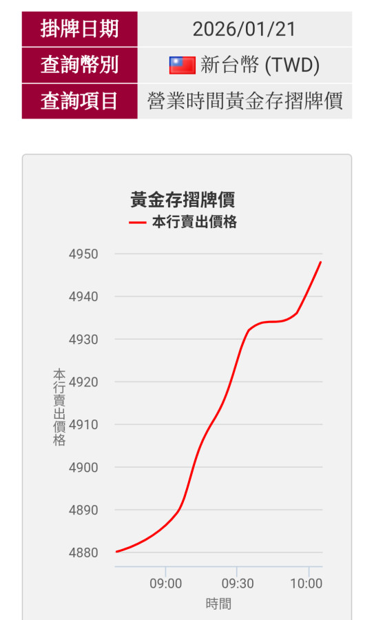 這2天金金在趕進度   大哥不是當假的   明天一早台銀金摺買入價應該已經4800元/1公克了