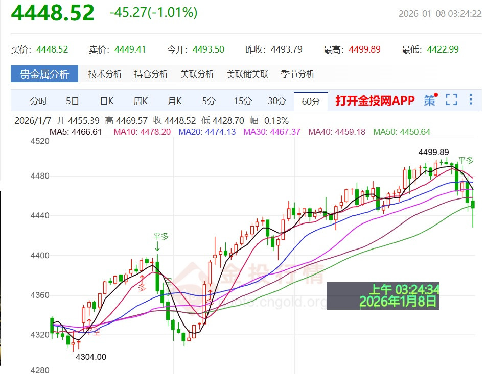 今2026.01.08=金盤已下跌至4433.44美元/盎司