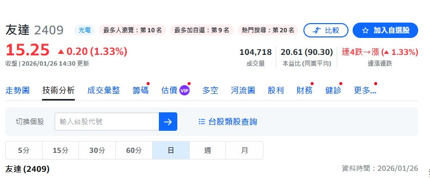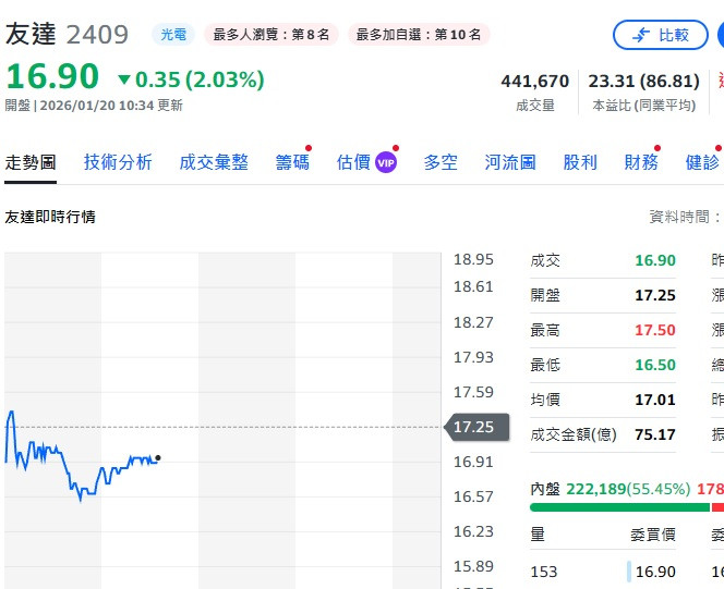友達 群創 今天就是跌