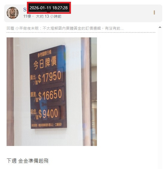 回覆 小金匠:S大大早,今天零售價估計每兩要18000...