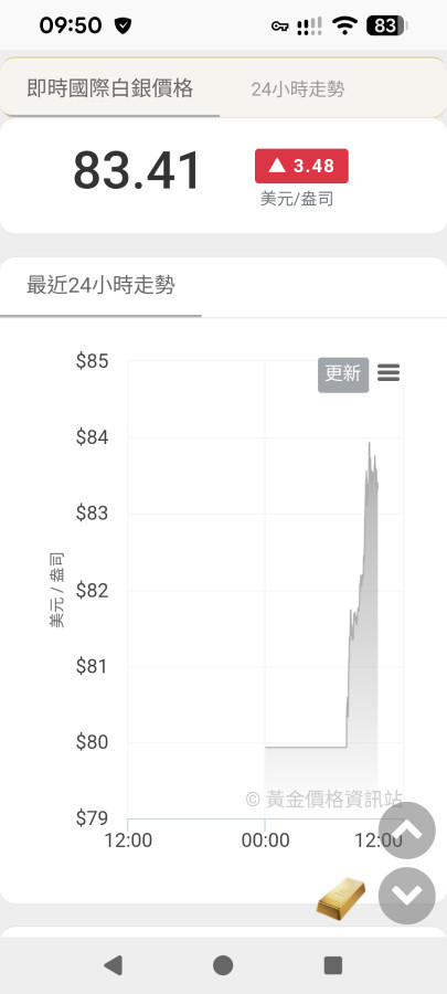 白銀開盤直接跳空往上衝到83,中間過站不停呢。