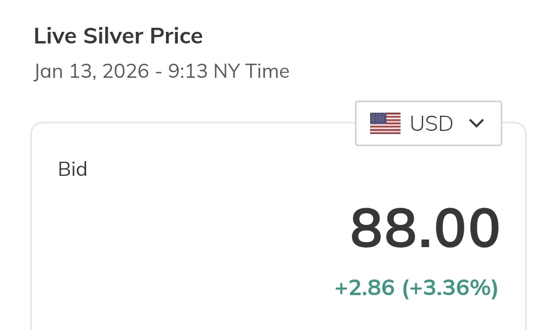 上海實體銀價1/13日每盎司己來到93.85美元,目前兩邊相差6~7美元。