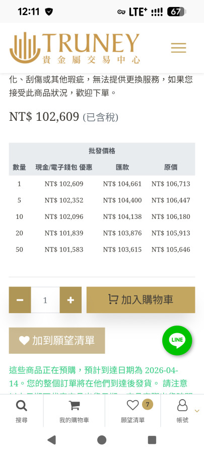 可以先下訂,一條訂金5000,這週內以10700的價格拿貨