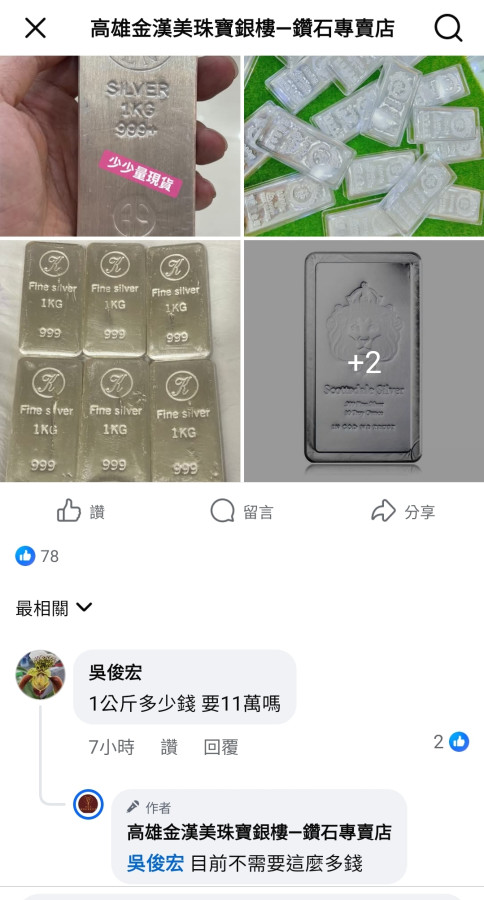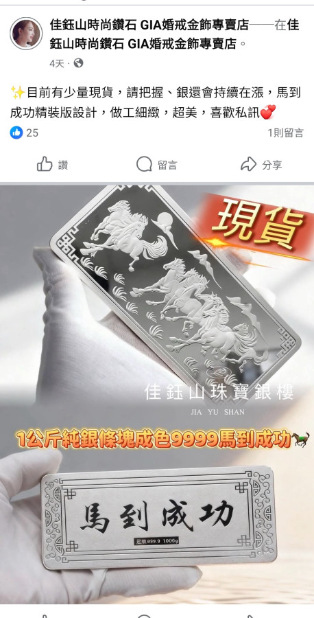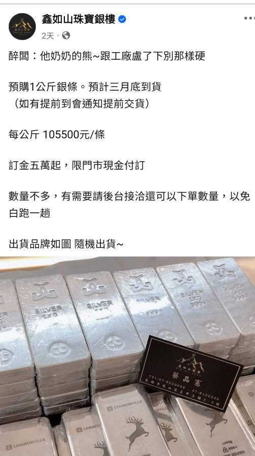 回覆 嘗四方:多家原有賣白銀的銀樓都說沒現貨可提!不知...