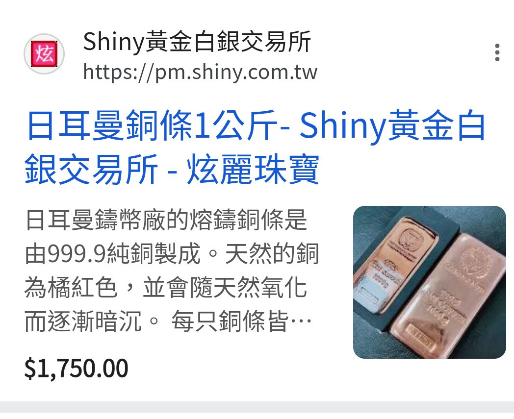 回覆 雅妹:請問….銅條真的能買來投資嗎?😆⋯⋯如果...