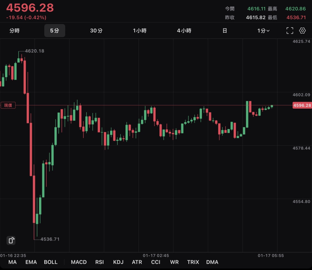 估計今晚收盤大概就是4590了,剩下的時間進入美盤的垃圾時間。