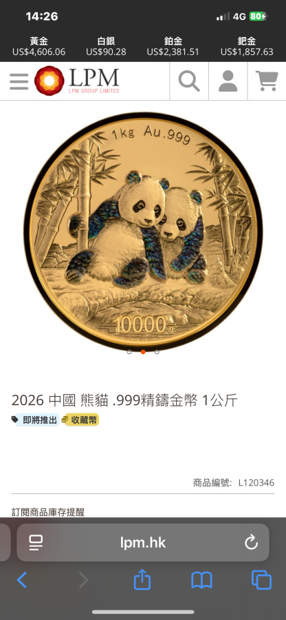只賣一管的。https://www.lpm.hk/zh/2026-1-oz-australia-kangaroo-9999-silver-bu-coin.html