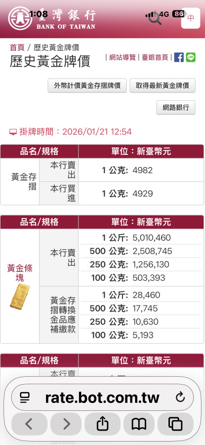 你隨便去台銀領都超過50萬以上的黃金