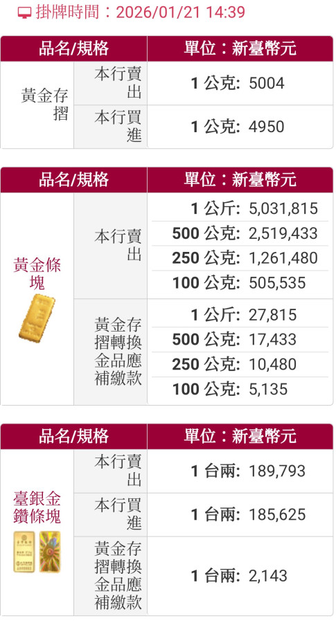 現價5004台幣/克