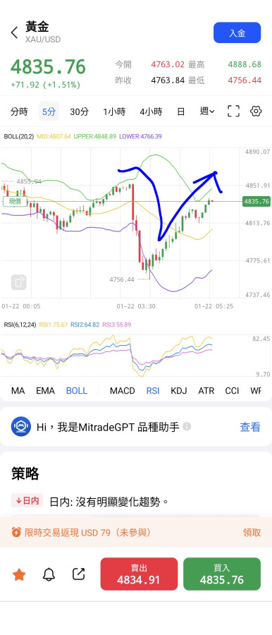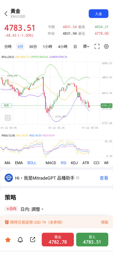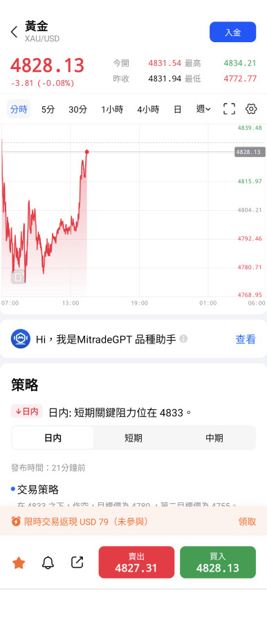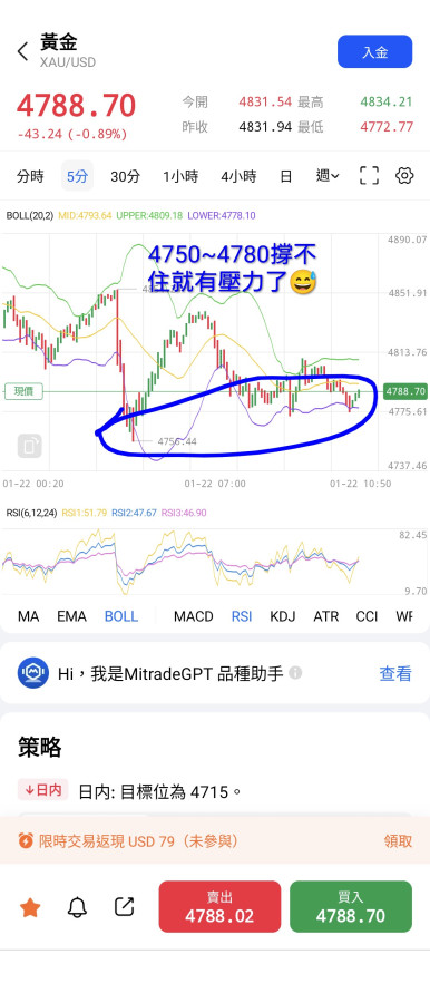 可推論:4800以下至4710美元/盎司是盤整區間,請投資人留意資金調節或加碼。