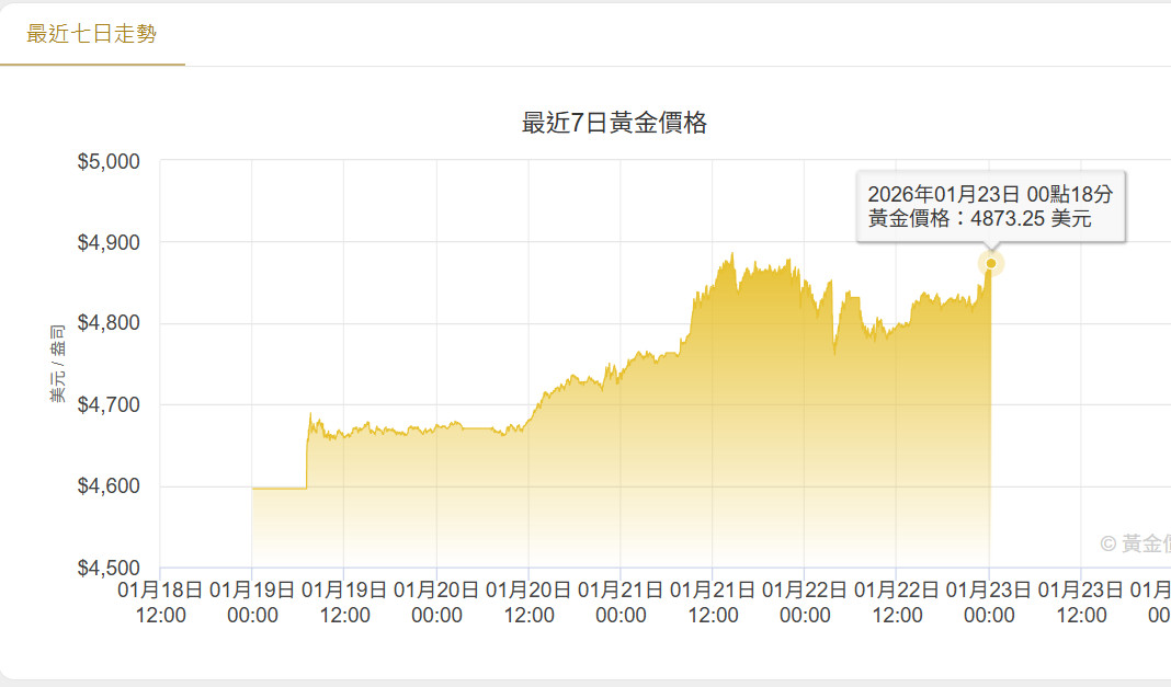 4873.25,黃金即突破歷史新高。
