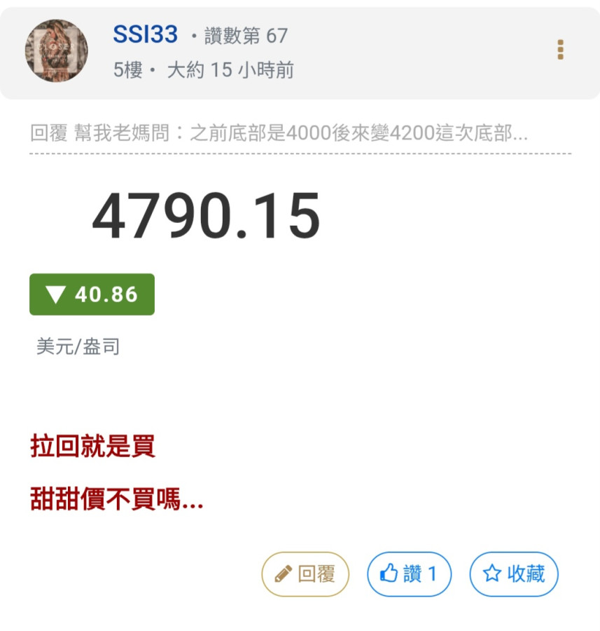 回覆 SSI33:驚不驚喜 意不意外殺下來不買 還想更低&...