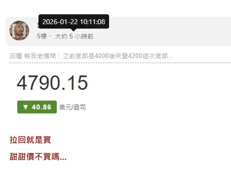 至少沒人因為您的評論而賣飛黃金,我們都幫您扛了多少言論壓力。