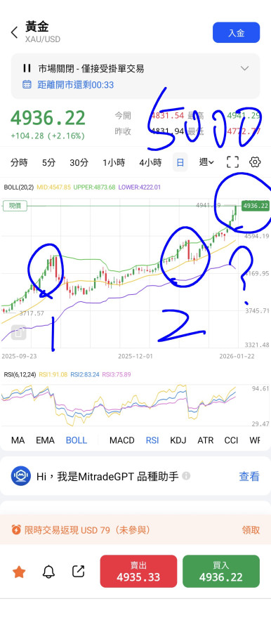 不過4980就算砸盤到4780,黃金還是好貴.... 😭