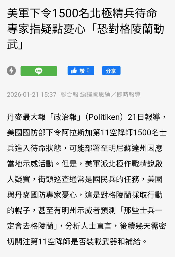 格陵蘭協議框架或只是川普幕僚的獻策,未必滿足的了川普野心。美軍1500名精兵待命,是否又是一次逼迫動作?