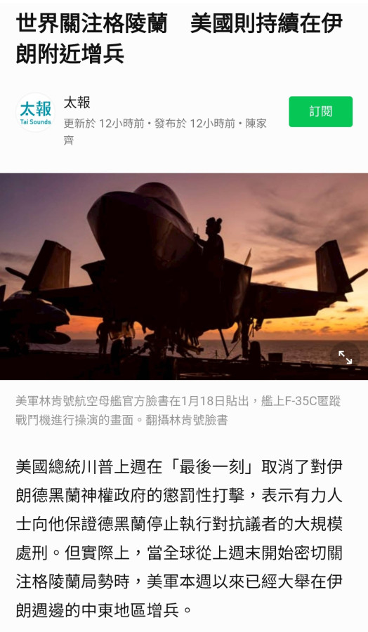 與此同時,美軍持續增兵中東,美伊衝突可能性急速上升;