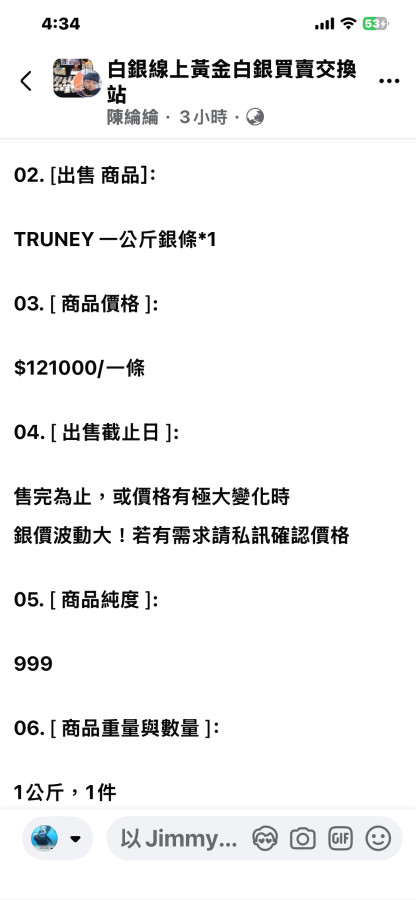 回覆 葉芬:我的月尾才能拿到貨(新加坡)銀條 1公斤...