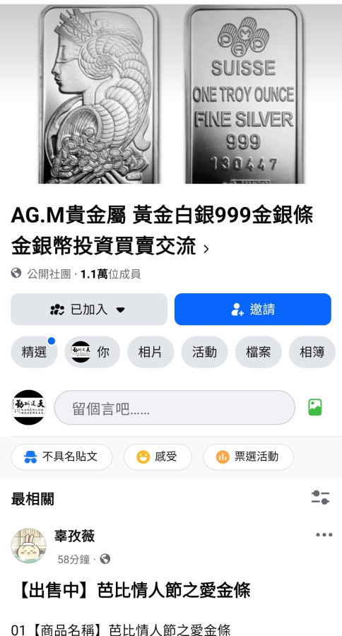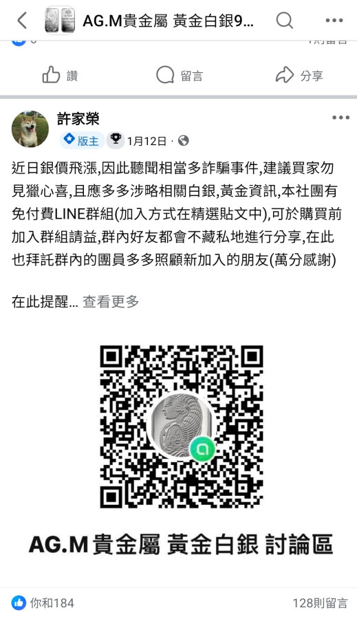 回覆 珍珠寶:預購價要約 14萬/ 1kg (台灣銀條...