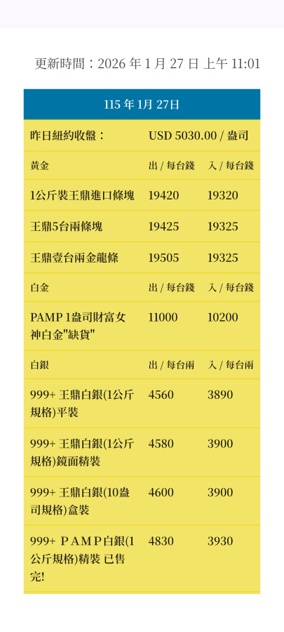臉書我看不少放5錢1兩條塊,均價每錢20000以上,金友們很敏銳的。5錢那個放101000。XD