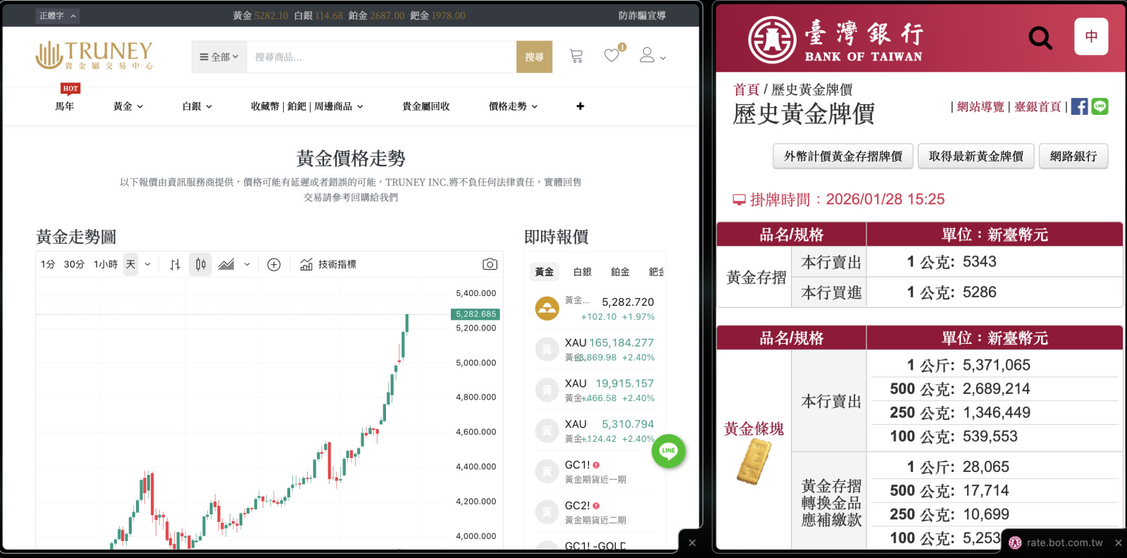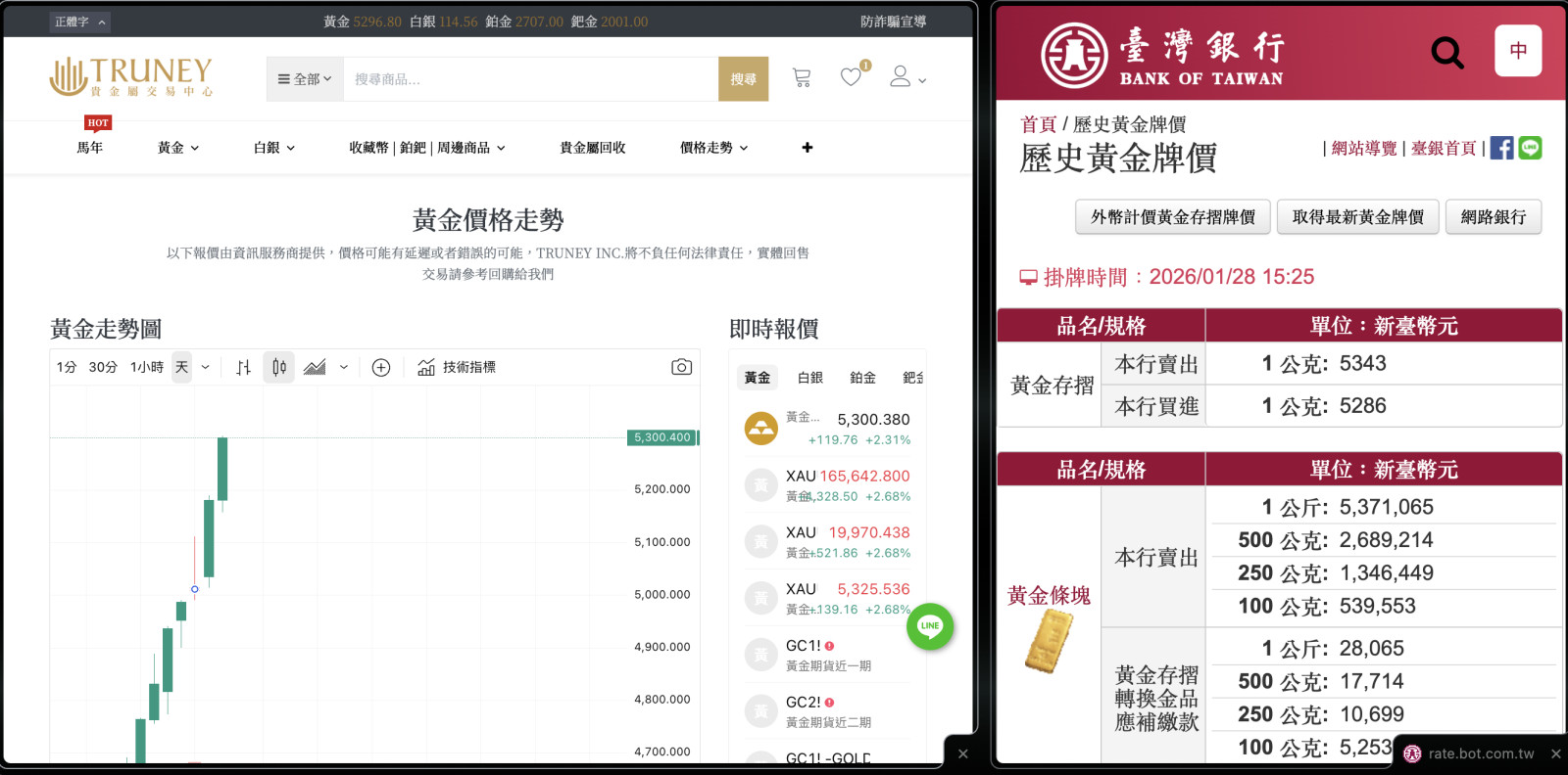 前幾天 4900 、 5000 的時候緊急去補了 150 公克的黃金,這才過兩三天的時間,就要 5300 了嗎?
