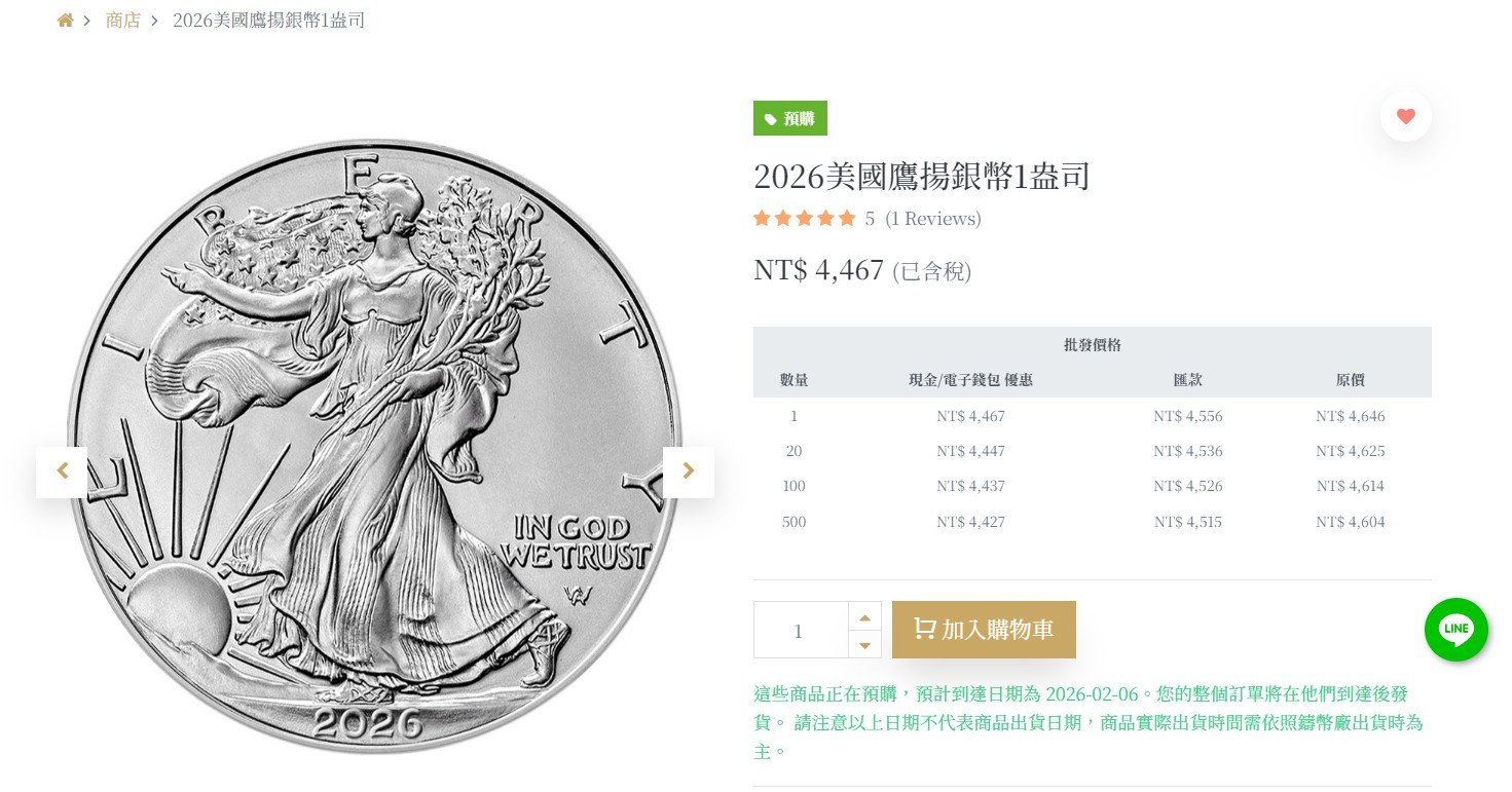 粗尼到白天都還在接鷹揚銀幣的單,預計到貨日2/6號,後來才改成缺貨。