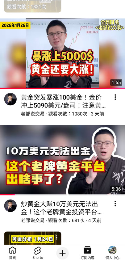看看這個老鄒講了一個月,黃金要大漲,放幾張影片給大家看,有人想揍他嗎?剛剛還在講大漲。