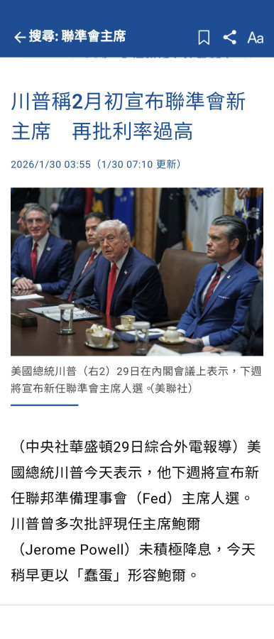 公佈後聯準席當四年,希望川普選放🕊️歌最響亮的那一位💪