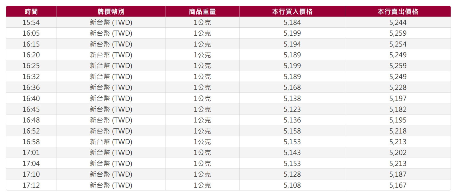 台銀官網與網路銀行報價一致=已經沒問題了